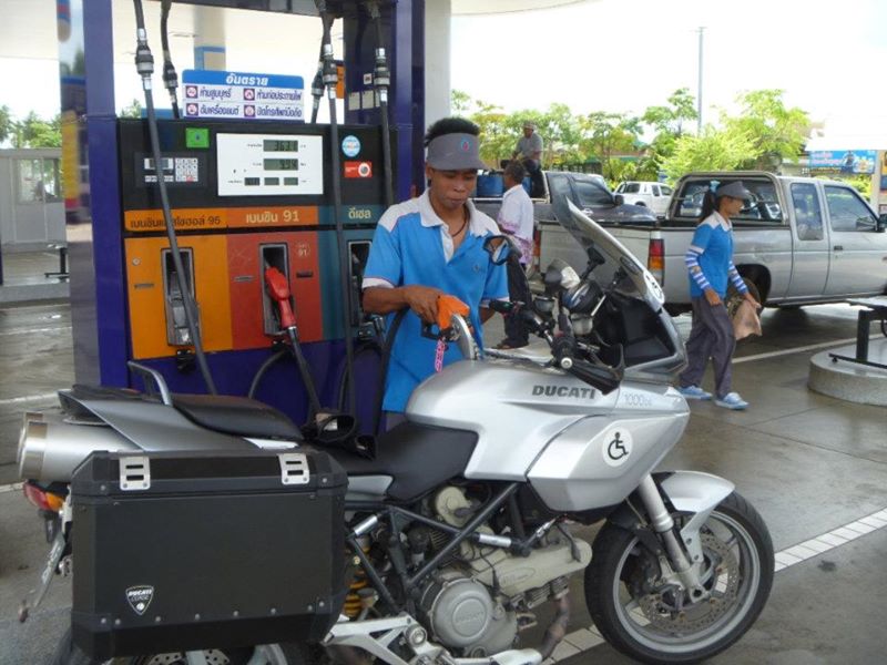After 15minutes of power-nap, I was all refreshed and ready to continue. We rode along highway 4 and somewhere near Phatthalung, I fueled Medusa for the first time in Thailand